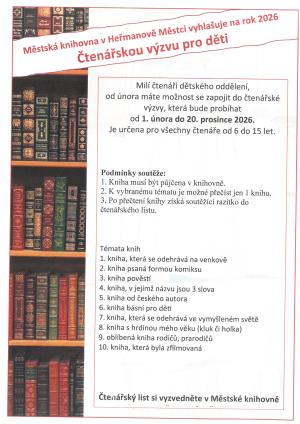 Městská knihovna v Heřmanově Městci vyhlašuje na rok 2026 "Čtenářskou výzvu pro děti".