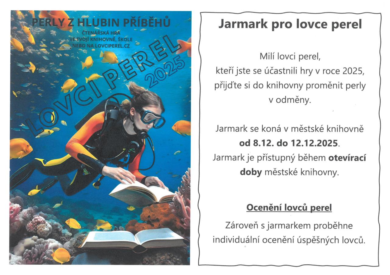 Jarmark se koná v městské knihovně od 08.12. do 12.12.2025. Jarmark je přístupný během otevírací doby městské knihovny.